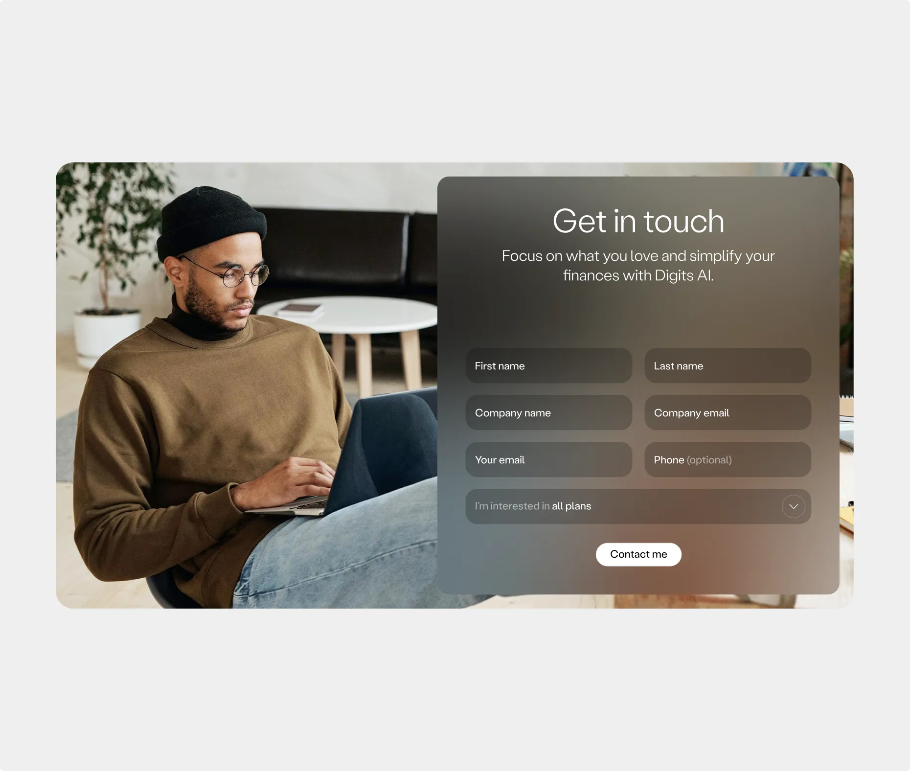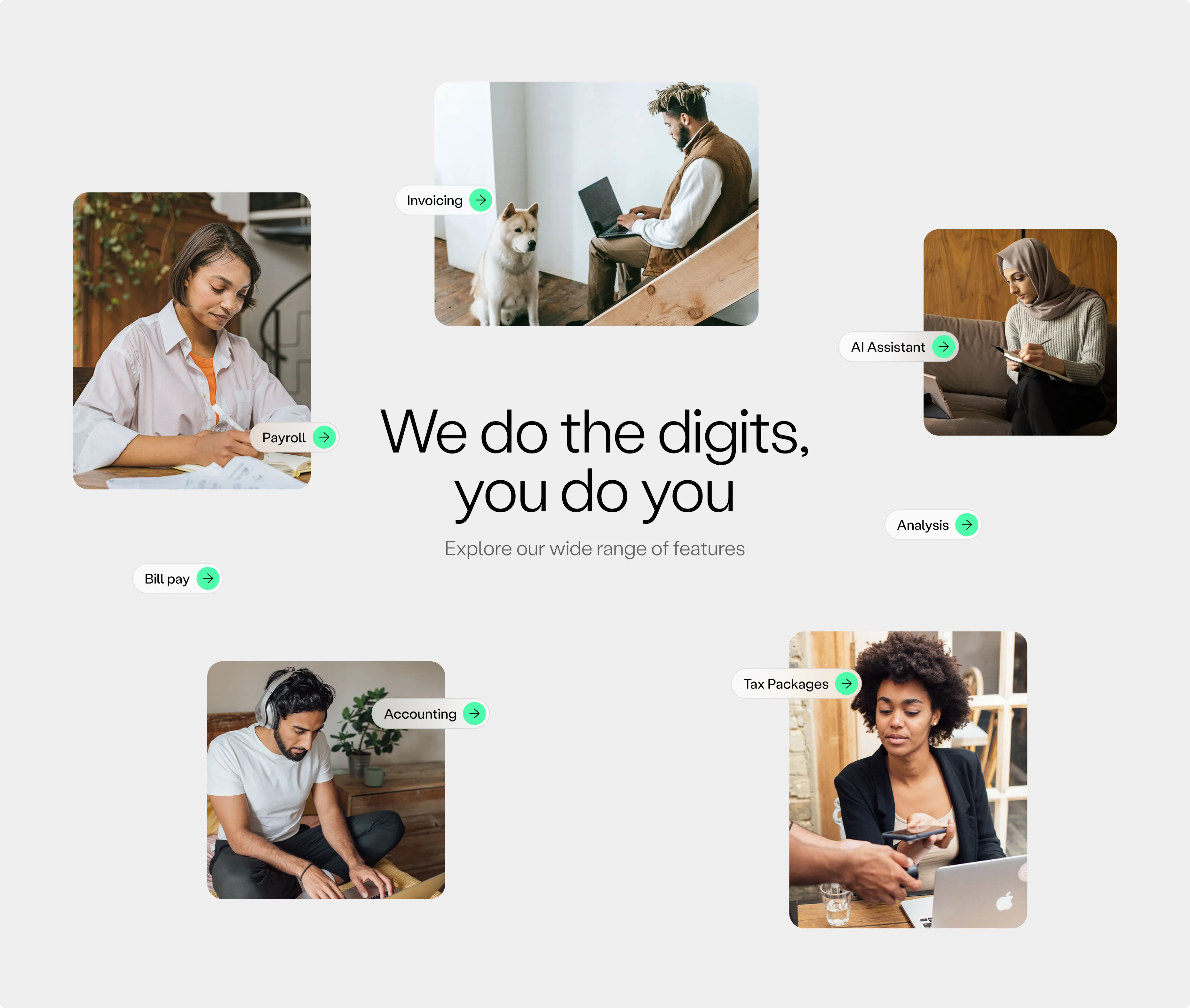 Setting to the tone for the Digits brand as a whole we defined the visual expression both for the marketing website as well as the AI product. Different tools in the visual toolbox were given a distinct purpose within the bigger visual expression. As a whole, the marketing website need to build trust in the product, but also be relatable in order to be appealing and desirable. Additionally, it needs to be decluttered and feel simplified and efficient.
