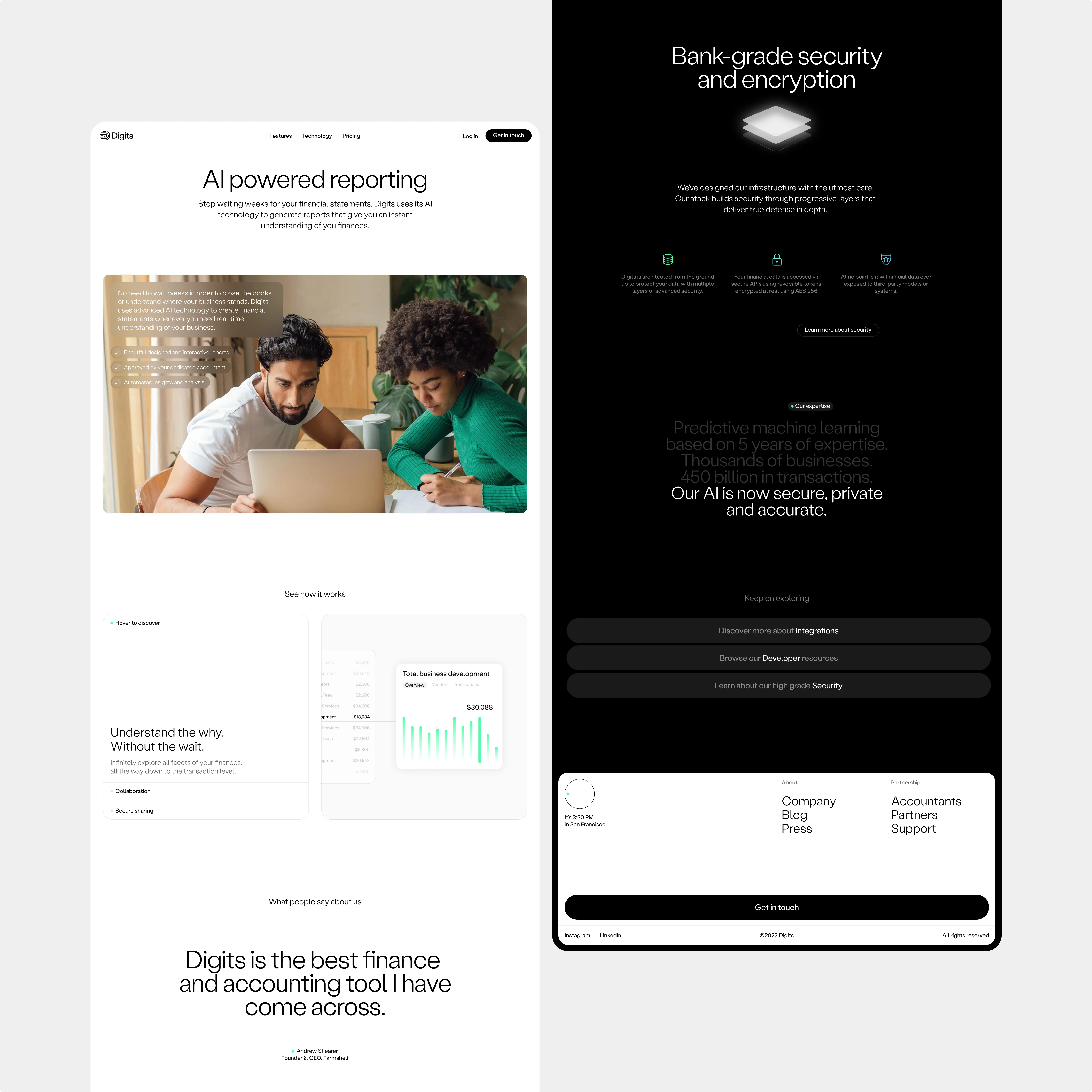 When Digits approached Above about rethinking their marketing website and AI accounting tool, it became apparent they had challenges. While the core product is potentially ground breaking, it was complicated to explain. Many business owners hates accounting and there is a sceptisism to AI “getting the numbers right”. On top of that Digits’ visual expression and user interface was outdated.
