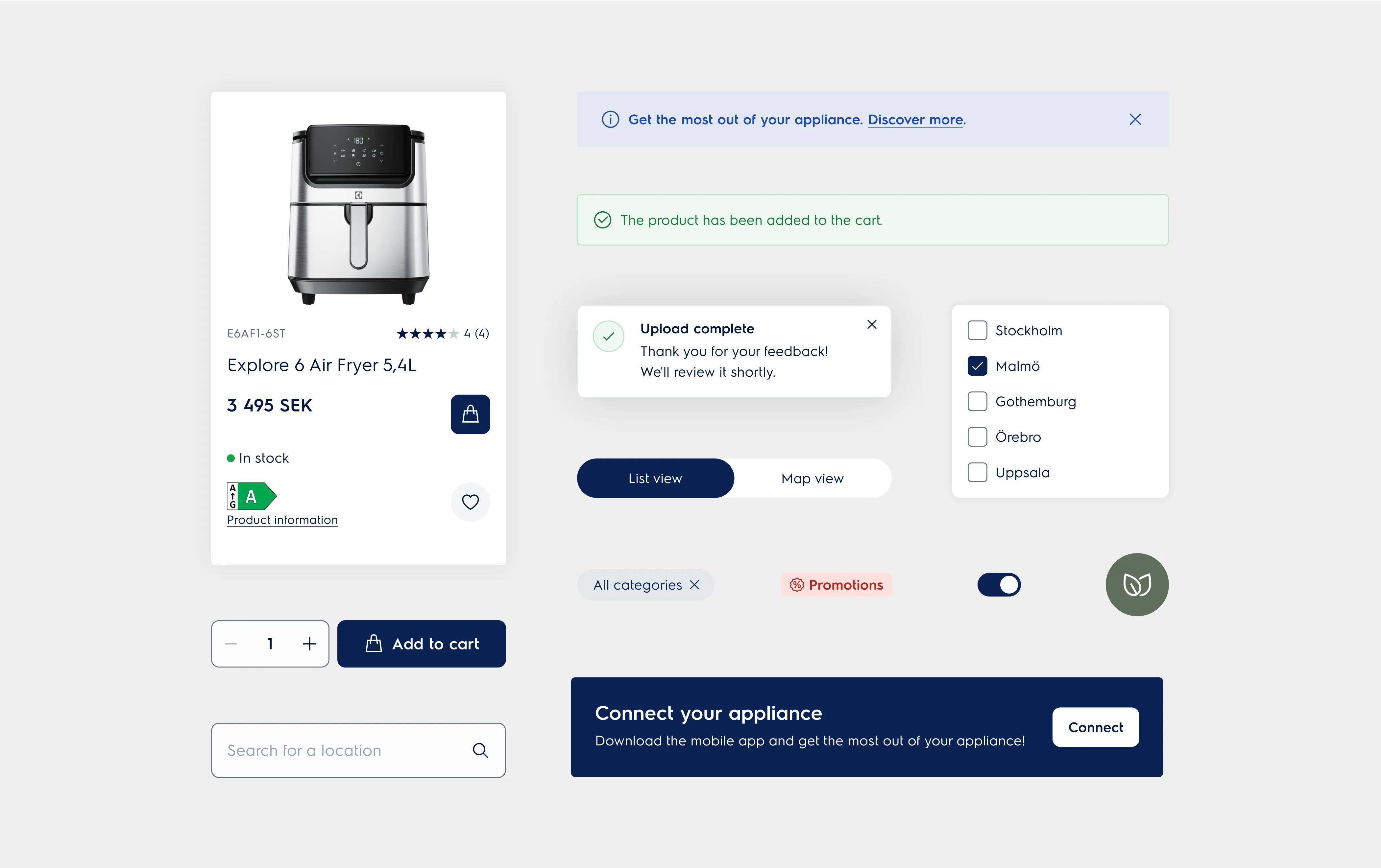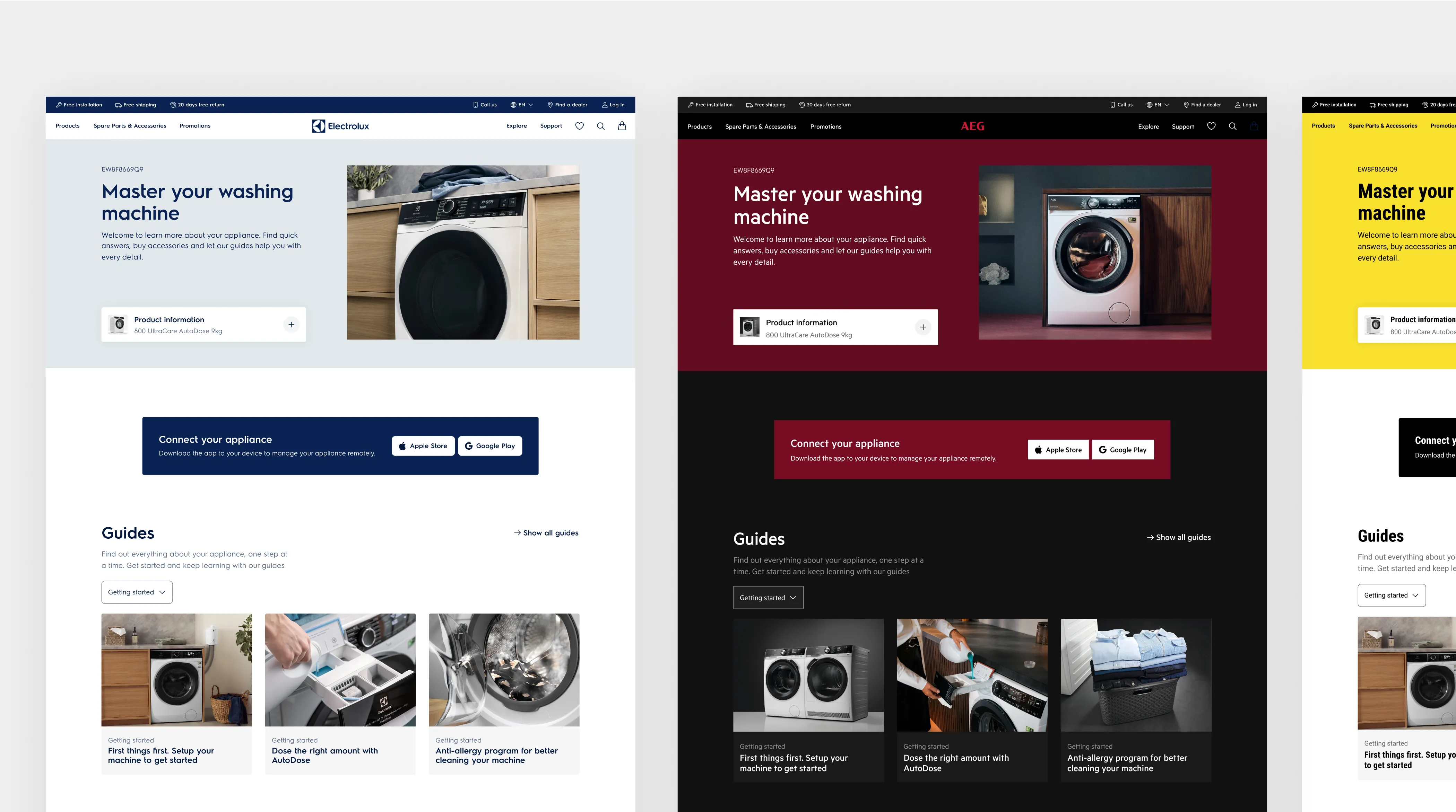 SHAPE is the Electrolux Group’s comprehensive digital design system, seamlessly integrating across all their digital platforms (web, apps & appliance UI), including multiple brands across the globe. Defining and rolling-out a design system within a multi-national, multi-brand organization is hugely complex due to the multitude of stakeholders, processes and strategies, and Above was tasked with supporting Electrolux navigate this challenge. Above, in partnership with Electrolux’s in-house design systems team, embarked on a journey that started by defining Electrolux’s design language for all web touchpoints, then moved on to designing and documenting all components, and finally setting up a governance model.
